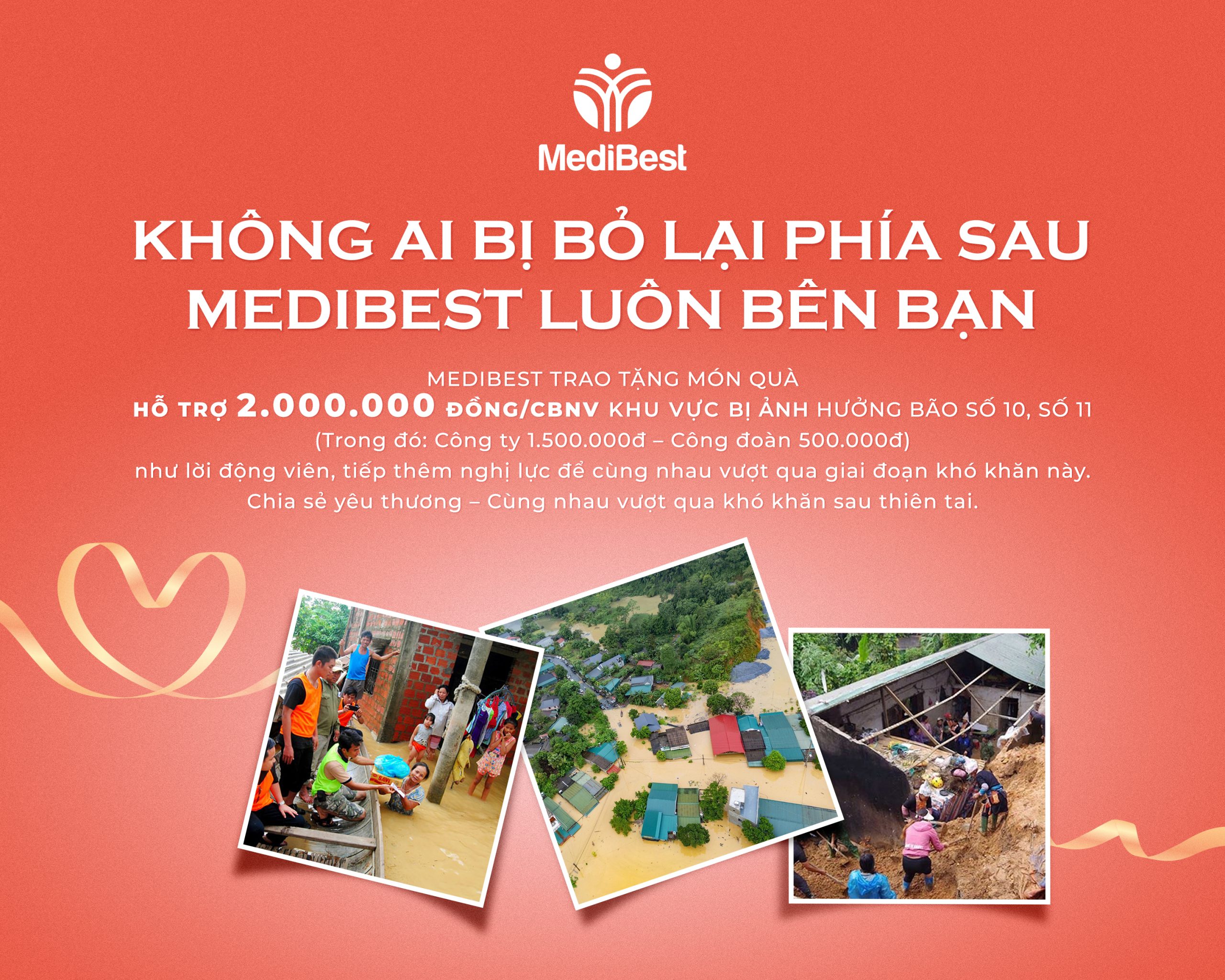 Bằng tất cả tình cảm và sự sẻ chia, MediBest mong được cùng anh chị san bớt phần nào gánh nặng, để mỗi người đều cảm nhận được tình đồng nghiệp, tình người vẫn luôn hiện hữu giữa những ngày gian khó. Công ty và Công đoàn xin được gửi tới mỗi anh/chị món quà hỗ trợ trị giá 2.000.000 đồng – như một lời động viên nhỏ, tiếp thêm nghị lực để cùng nhau vượt qua giai đoạn khó khăn này.