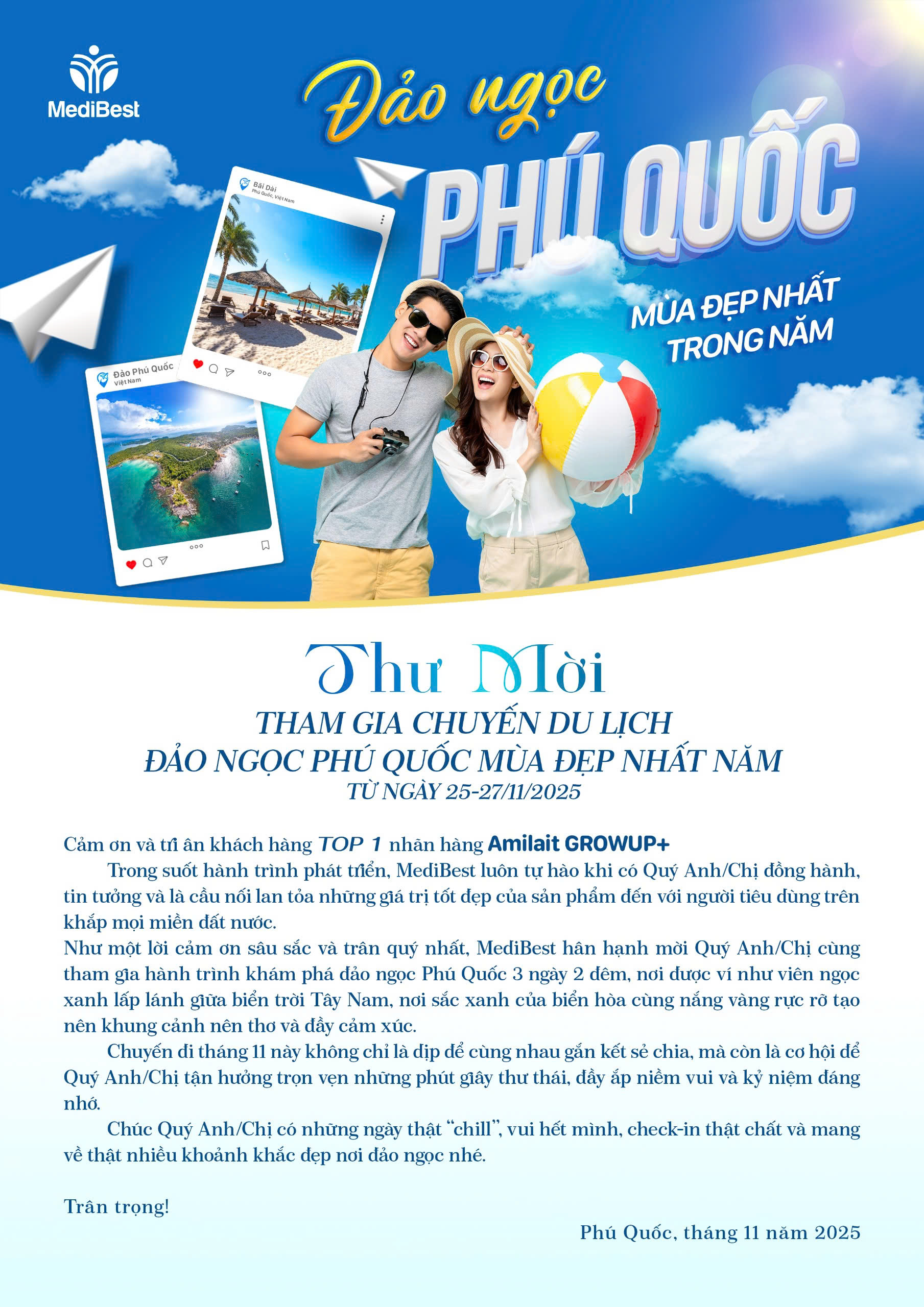 Những ngày cuối tháng 11, khi sắc trời dịu lại và biển xanh Phú Quốc bước vào mùa đẹp nhất, MediBest xin được gửi đến Quý Anh/Chị món quà tri ân đầy trân quý: hành trình 3 ngày 2 đêm khám phá đảo ngọc.